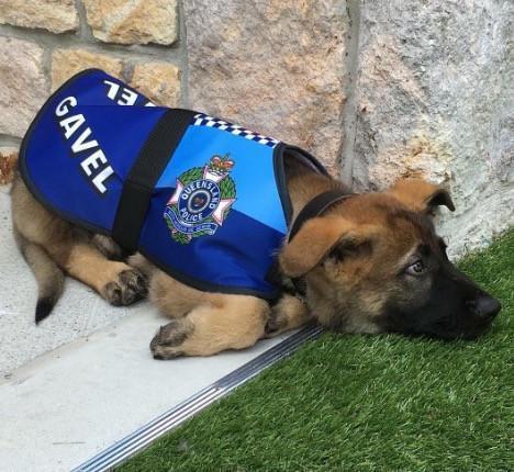 Gavel was training to be a special police dog with the Queensland police in Australia. However, six weeks into training, he was deemed much too friendly to become a member of the police force.