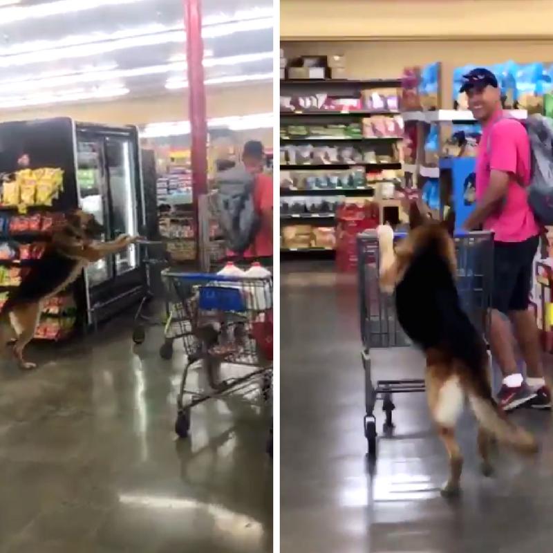 Shoppers at a California grocery store spotted a very interesting sight involving a happy-go-lucky and helpful dog. A German shepherd was captured on video on its hind legs casually pushing a shopping cart throughout the store.