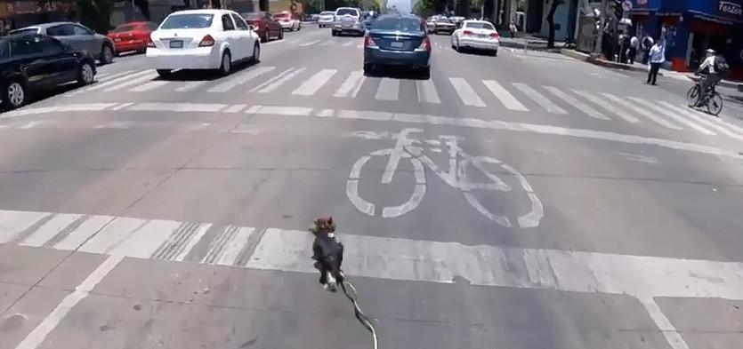 One very brave woman made the decision to put her own life on the line to risk the life of another. The cyclist spotted a small dog get loose and rush into busy traffic in Mexico City. Almost immediately, the woman races after the pooch on her bike and puts herself in between the cars and the dog.