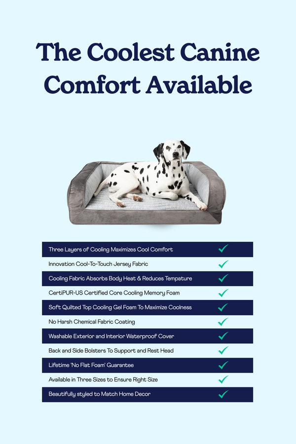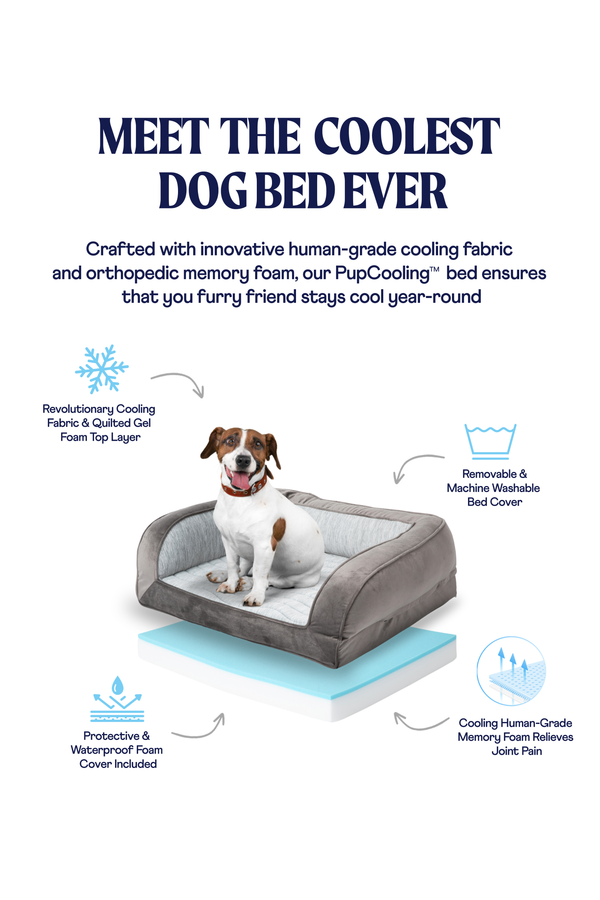 Introducing the PupChill™ Cooling Bolster Dog Bed – Crafted with revolutionary 3-layers of cooling technology and premium materials from top to bottom, our PupChill bed ensures that your furry friend stays refreshed and relaxed year-round. Treat your beloved canine companion to the ultimate oasis of indoor comfort and coolness!